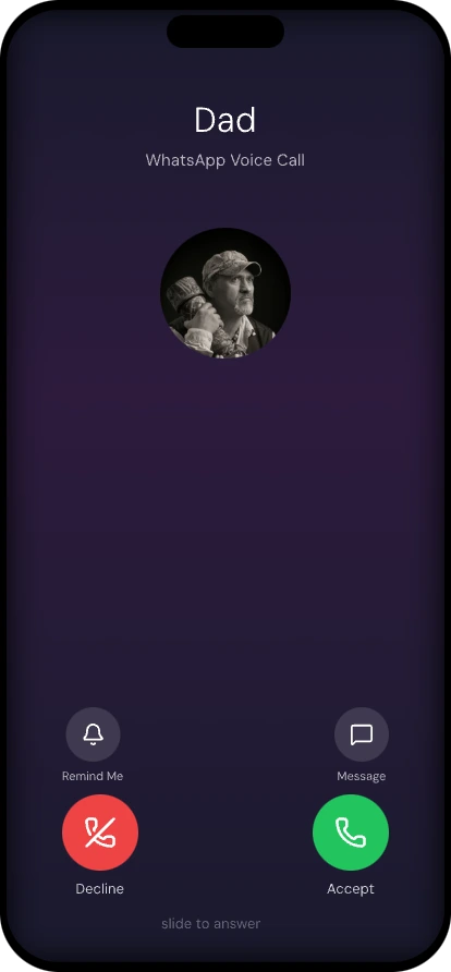 Going on a date with someone new? Set a timer. In 30 minutes, your phone rings — it's "Dad" with an urgent family situation. If the date is going great, just don't pick up. If something feels off, you now have a completely believable reason to leave. No awkwardness. No confrontation. Just a graceful, safe exit.